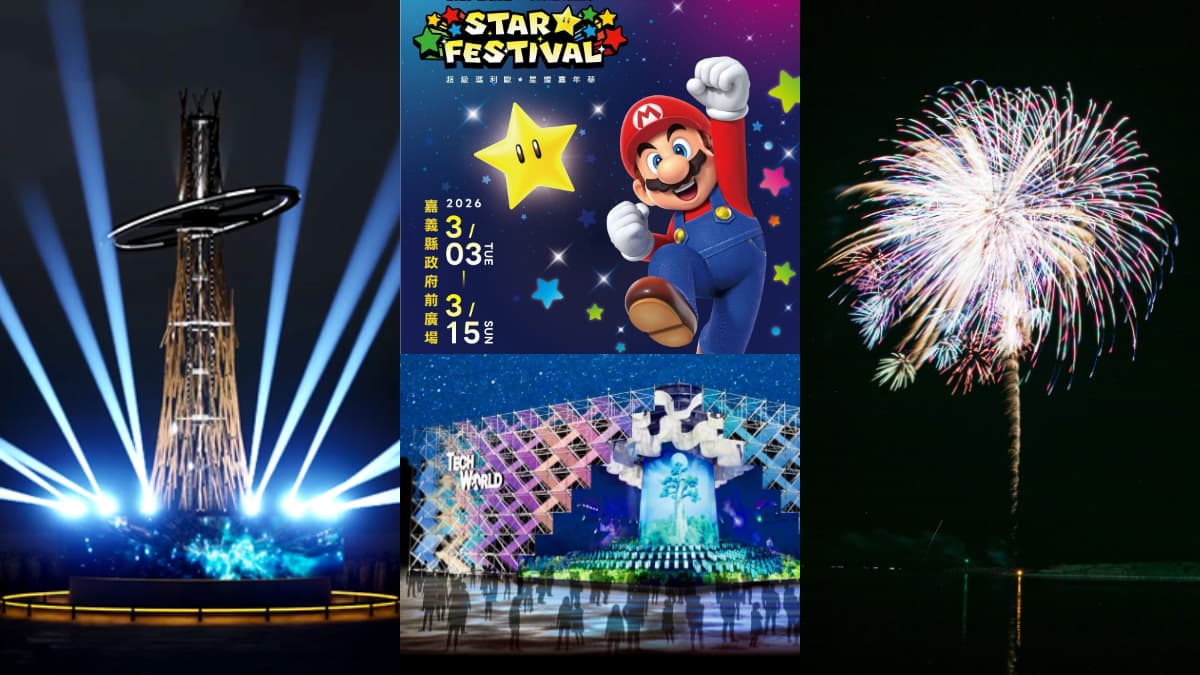 「2026台灣燈會」今年來到嘉義舉行,將於3/3~3/15在嘉義縣政府前廣場、太子大道、故宮南院周邊登場,並於3/3開幕當晚20:05帶來開幕煙火秀,施放地點位於故宮大道,演出時間10分鐘,為燈會揭開華麗序幕 !今年燈會以「光躍台灣・點亮嘉義」為主軸,展出超過600件作品,透過燈藝創作、藝術展演及無人機科技運用,打造沉浸式、多層次的觀賞體驗,今年嘉義縣政府更首度攜手「任天堂(Nintendo)」合作,設置「2026 台灣燈會×超級瑪利歐・星燦嘉年華」特色燈區,讓大小朋友與喜愛的瑪利歐角色互動拍照!