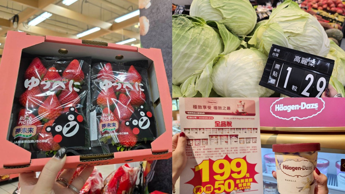 粉紅草莓季正式進入盛產期,愛買量販從3/6~3/8限時3天推出超狂優惠,台灣新鮮草莓只要99元就能開吃,多種蔬菜茼蒿、黑葉白菜、小松菜、奶油白菜、蚵白菜等通通也有買一送一優惠,婆媽們趕緊衝!另外,全聯女王節提前開跑,祭出哈根達斯每桶199元,更還加碼送折價券。無論是想用買一送一的脆嫩鮮蔬為餐桌加菜,還是想用哈根達斯療癒身心,這波最強採買攻略小編已經幫大家整理好了,快趁快閃期間準備囤貨囤起來!下載食尚APP,天天免費抽大獎!