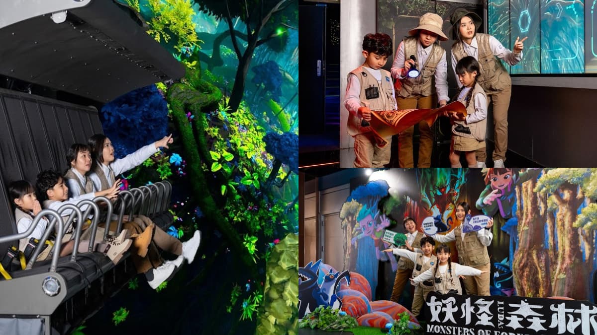 觀賞新片《妖怪森林》飛行劇院版,觀眾將化身「妖怪森林小隊」的一員,在觀影前會先接收到任務說明,接著進入飛行劇場搭乘設施,透過20米巨型球幕及全球獨家的六軸平台技術,讓觀眾雙腳騰空,穿越到未來50年後的台灣山林,過程中將有NPC帶領觀眾穿梭於妖怪森林之間冒險,孩子需要觀察、思考並主動參與,一步步拼湊線索、完成指定任務。作品同時也融合環境保育的概念,引導孩子理解森林生態所面臨的危機、守護環境的重要性。