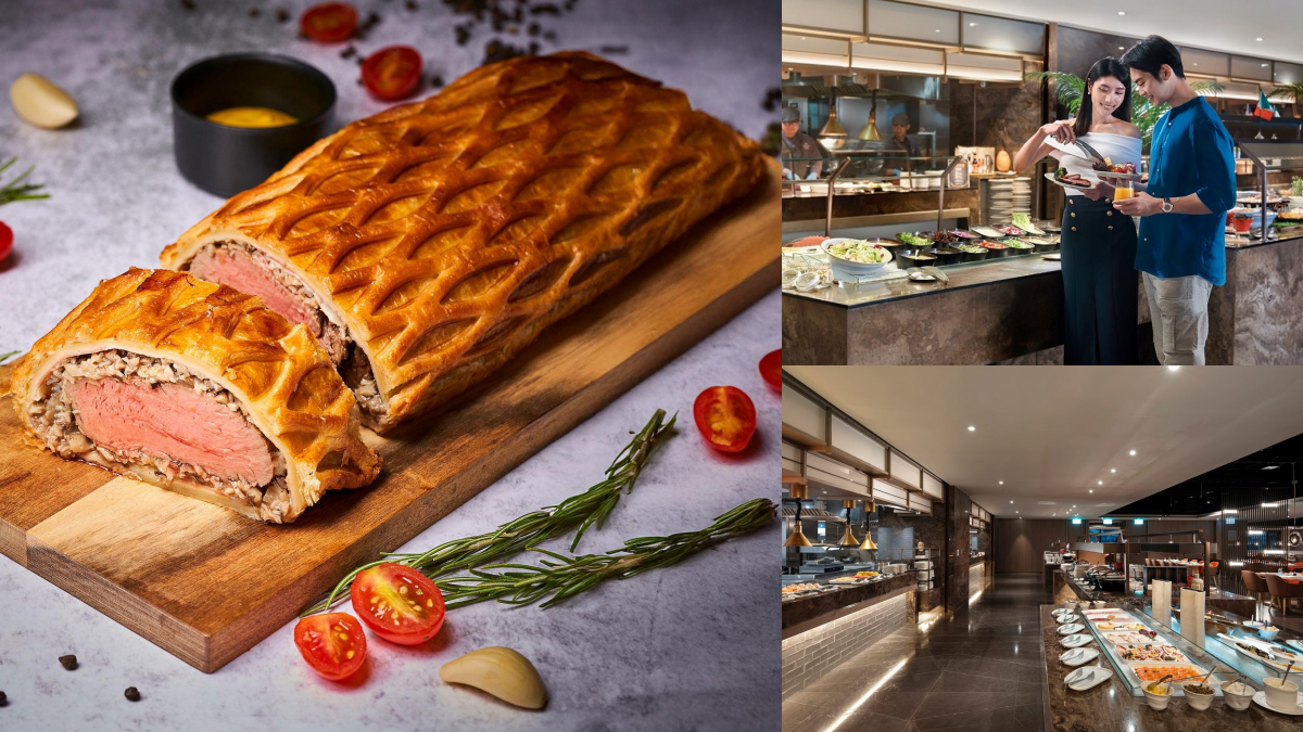 即日起至5/31,餐廳推出「法國風味饗宴美食節」,平日午餐主打「火焰豬腱骨」及「焦糖蘋果」,晚餐則有「威靈頓火腿」。假日午晚餐的「主廚威靈頓牛排」選用紐西蘭菲力,以大火煎至表面上色鎖住肉汁,內層包覆綜合蘑菇醬、帕瑪火腿與奶香酥皮,經烤箱烘烤至金黃酥脆,切開時還能見到晶瑩肉汁緩緩流下,外酥內嫩的口感令人回味無窮。