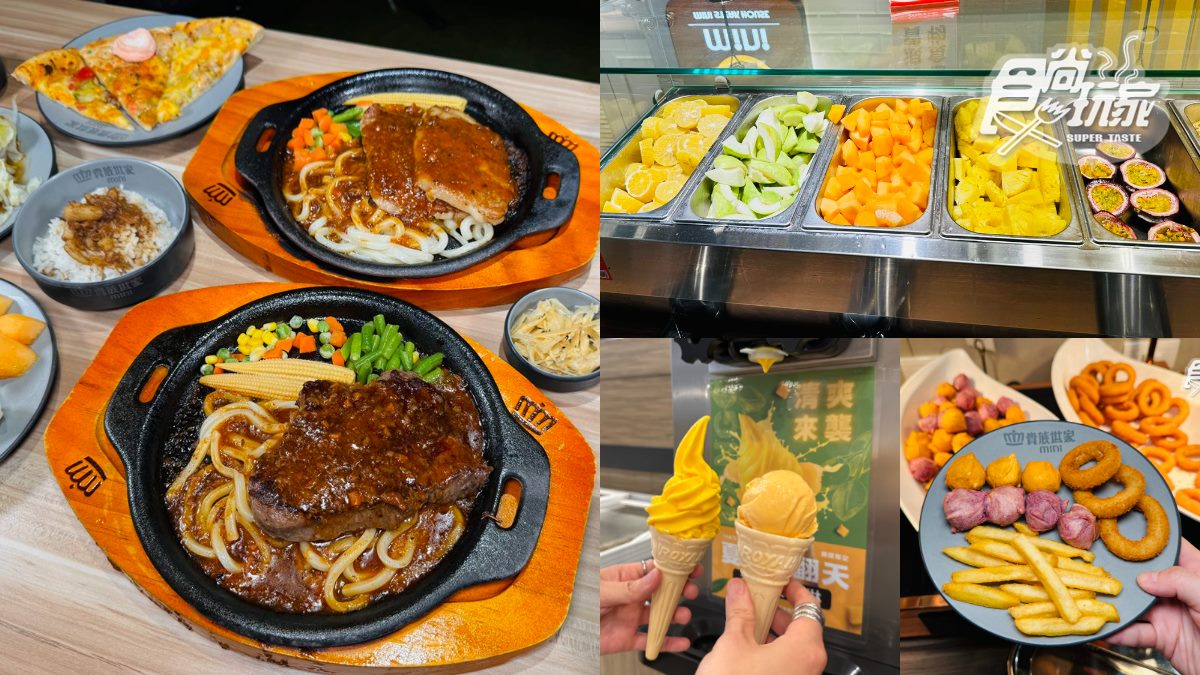 「貴族世家mini」主打平價路線,排餐選項從牛排、雞排、豬排到魚排共14種可選,還有純自助沙拉吧選擇,最低只要260元就能開吃!自助吧供應超過20種品項,從炸物、披薩、小菜、咖哩飯、濃湯、冰品、飲料全都無限續,尤其炸物區酥脆薯條、雞塊、薯球人氣爆棚~