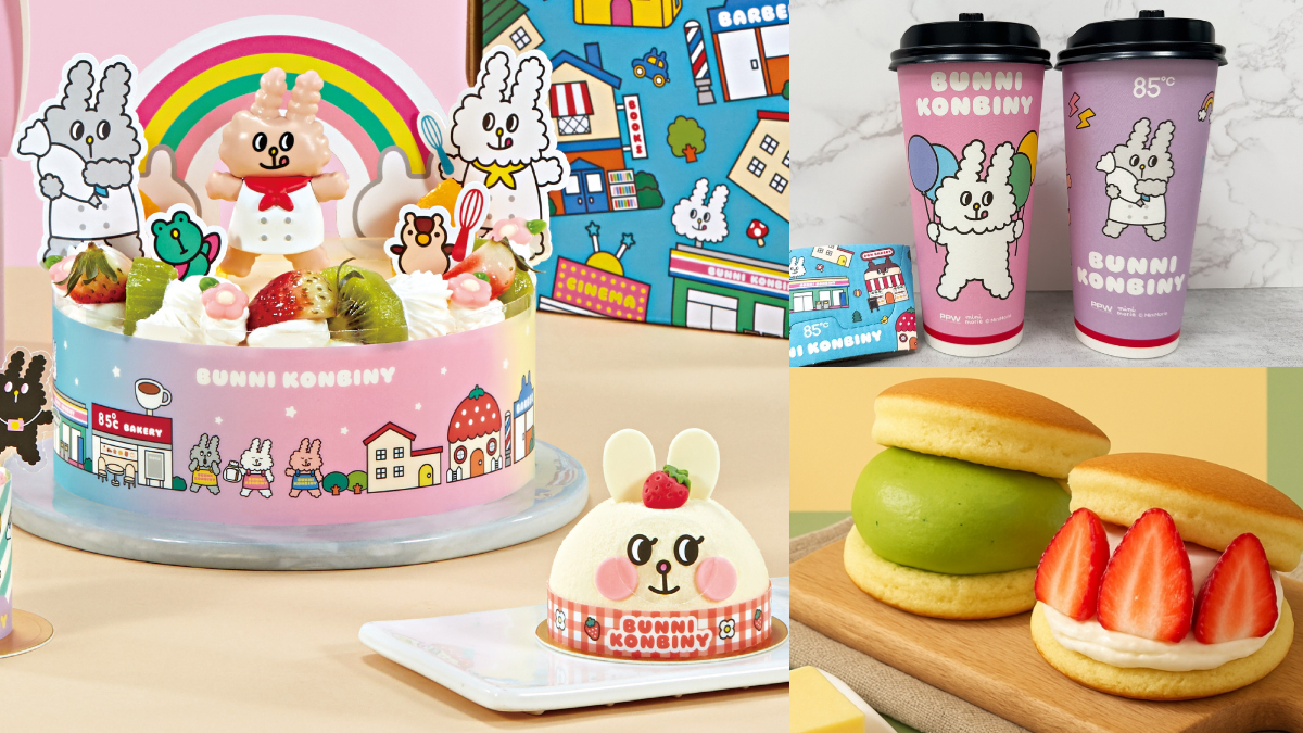 ▲85度C攜手超人氣IP「兔子便利商店 BUNNI KONBINY」,12/26起推出全新聯名蛋糕、杯款。(圖片來源:85度C)