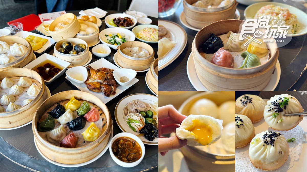 ▲五色蒸餃一次上桌超吸睛,鮮肉、花素、海鮮、蟹黃、松露5種口味,皮薄餡滿、層次豐富。(張庭瑄 攝)