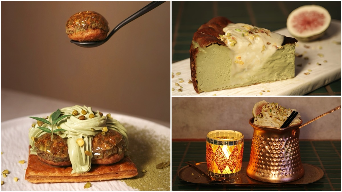 拉莫分部將開心果玩成一系列法式堅果狂想曲。「開心果彈珠台」(原價220元/優惠價187元)以法式聖多諾黑為靈感,5顆焦糖泡芙層層堆疊,內餡填入濃郁義大利開心果醬與低糖外交官奶餡,焦糖脆殼微苦、堅果香爆漿,小編試吃時,一入口層次瞬間炸開,是甜點控的上癮系代表甜點。